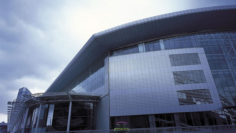 哈爾濱國際會展體育中心容量巨大、功能完善。具備建筑面積51000平方米的比賽用場地,面積為3525平方米的體育館,可容納1.1萬名觀眾,這里可進行冰球、籃球、排球、羽毛球、體操、手球等多種項目的比賽及大型文藝藝術演出。屋面使用了寶鋼熱鍍鋅氟碳彩涂板。