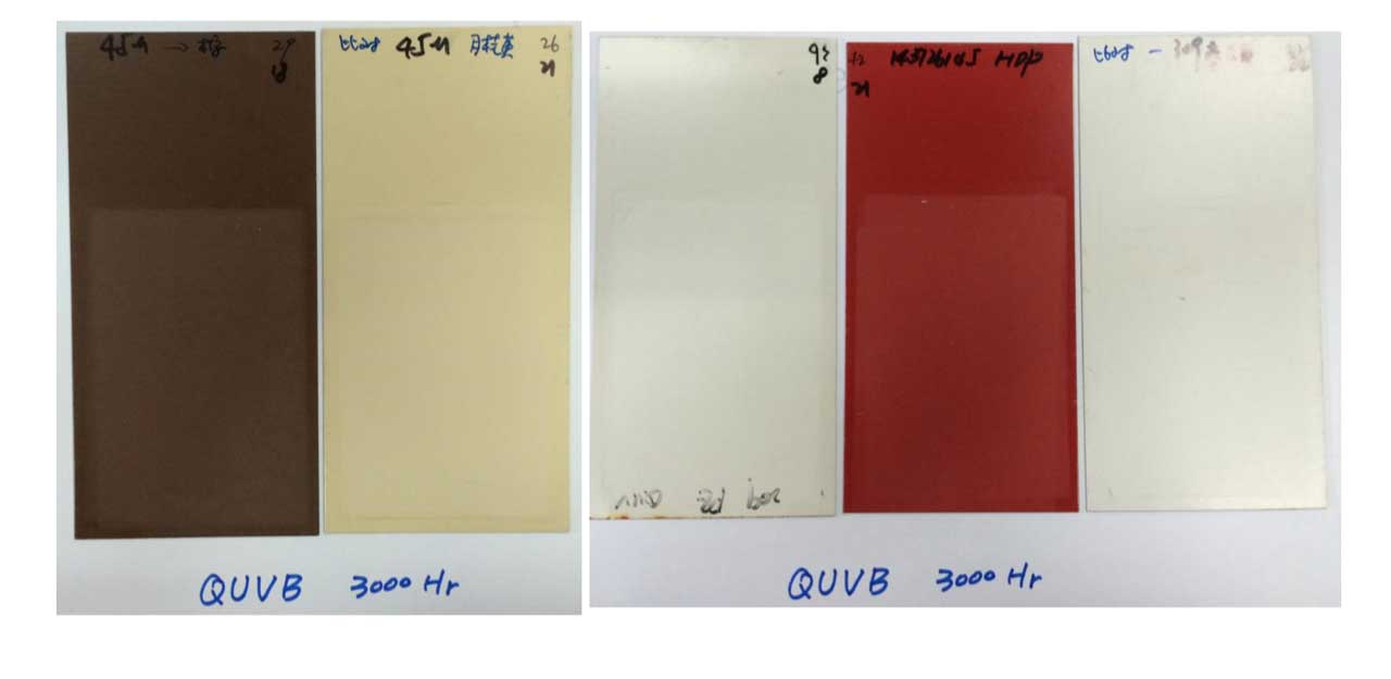 經(jīng)過3000小時QUVB試驗后,45微米氟碳產(chǎn)品涂層粉化仍保 持0級。