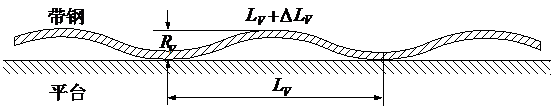 從翹曲的帶鋼切取一段置于平臺上,如將最短縱條視為一直線,最長縱條視為一正弦波,以翹曲波形來表示板形,稱為翹曲度(急峻度),其中Rv表示波幅(浪高),Lv表示波長(浪距)。