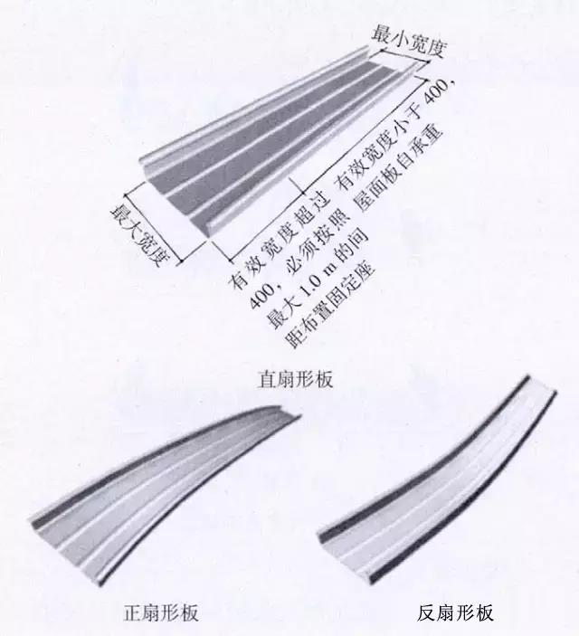 1)直板:適用于單坡、雙坡及半徑大于自然成弧半徑的單曲屋面;