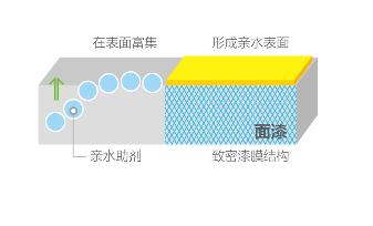 具有優(yōu)異的抗沾污性能,能抵抗污染物滲透到漆膜內(nèi)。優(yōu)異的親水性能
